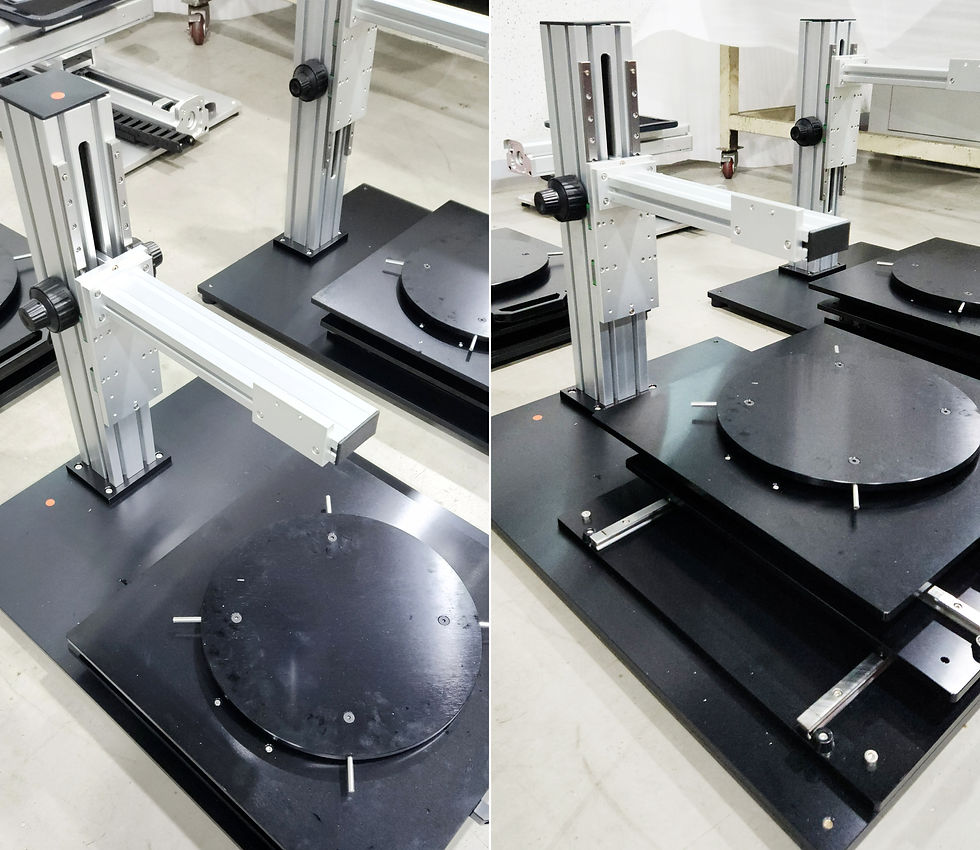 각 스탠드는 로터리 스테이지를 중심으로 정밀 정렬이 가능하도록 설계·제작되어